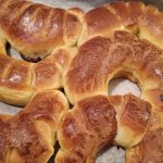 Riponili in una teglia con della carta da forno, spennellali con un poco di tuorlo, e falli lievitare per altre 9 ore circa. Se li fai la sera, infornali la mattina successiva. Sono pronti in 15-20 minuti a forno statico preriscaldato a 180°.